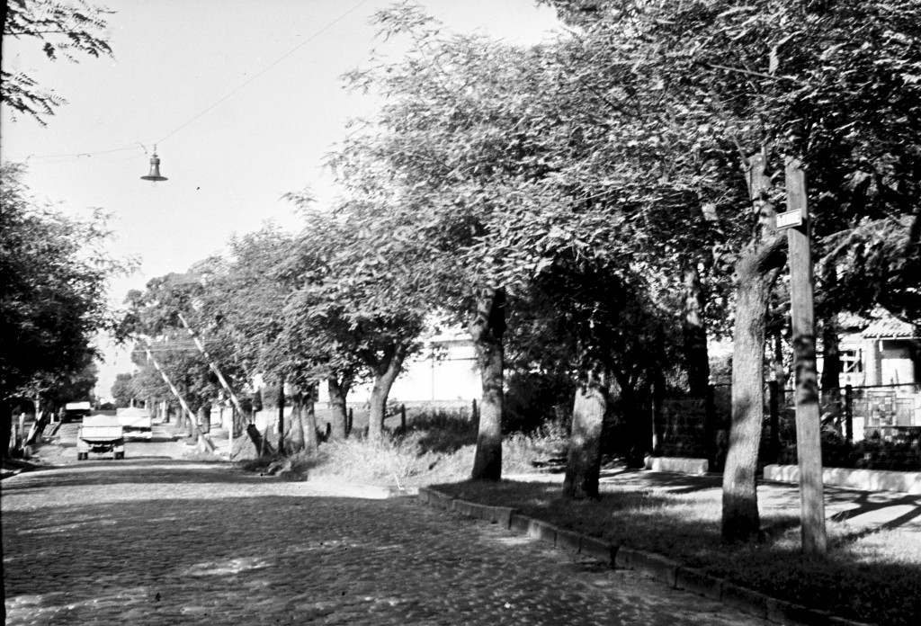 Fotografía de la actual calle Corrientes, que en ese entonces era una prolongación de la calle Gobernador Marcelino Ugarte, donde se puede observar el paso a nivel del actual Tren de la Costa.