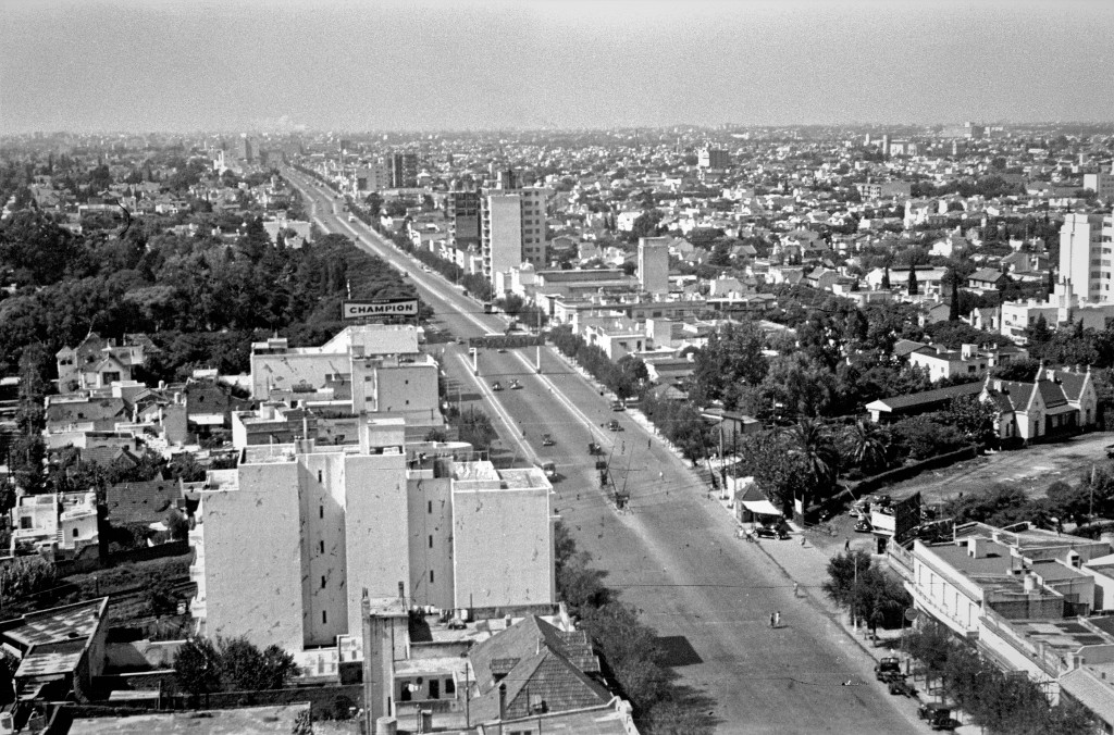 Vista panorámica de la Avenida Maipú en dirección sur hacia la Ciudad Autónoma de Buenos Aires. Se aprecian la quinta residencial de Olivos y la Estación Bartolomé Mitre del Ramal Retiro-Mitre del Ferrocarril Mitre.