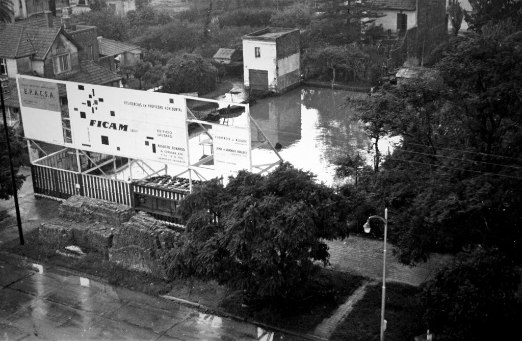 Fotografía de la zona del bajo de Vicente López, en la calle Antonio Malaver cercana a la Avenida Del Libertador, durante la inundación de principios del año 1959.