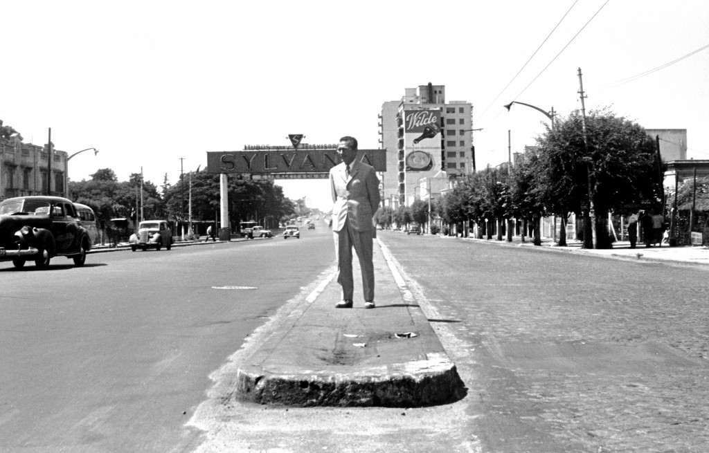 Elvidio Edmundo Queirolo, vecino de Olivos y fotógrafo aficionado, posando en plena Avenida Maipú, con vista hacia la Ciudad Autónoma de Buenos Aires.