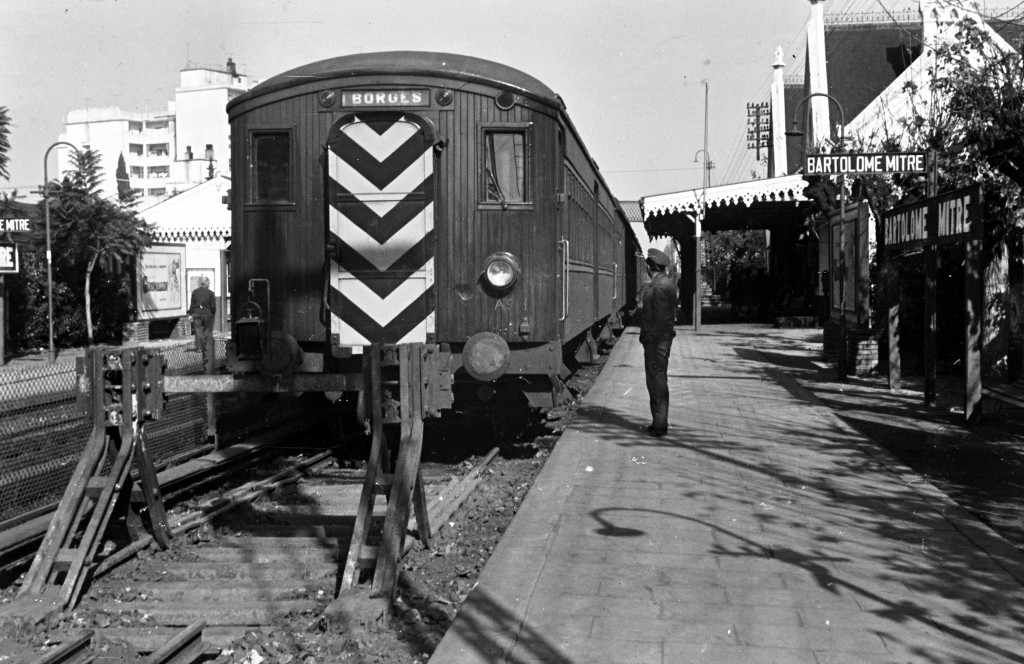 Formación del Ferrocarril Mitre en la estación homónima durante la inauguración del primer paragolpes terminal.