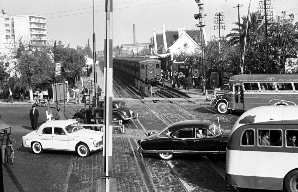 Paso a nivel del Ferrocarril Mitre, Ramal Retiro-Mitre, cuando atravesaba la Avenida Maipú, donde hoy se encuentra el puente peatonal del Tren de la Costa.