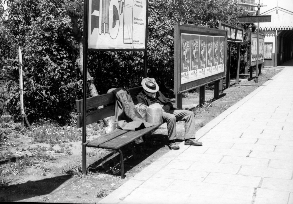 Hombre dormido en un banco de la estación Bartolomé Mitre del ferrocarril del mismo nombre.