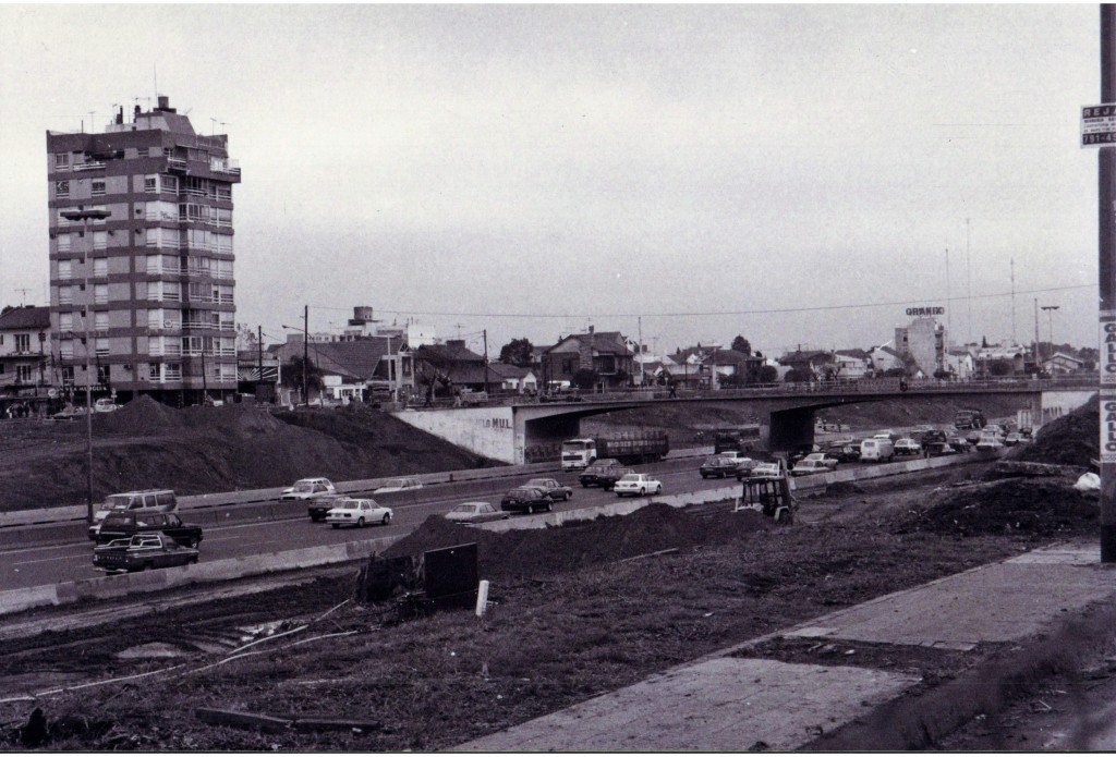 La autopista Panamericana, también conocida como Ingeniero Pascual Palazzo, en la intersección con la calle San Martín, durante su ensanchamiento a comienzos de la década de 1980.