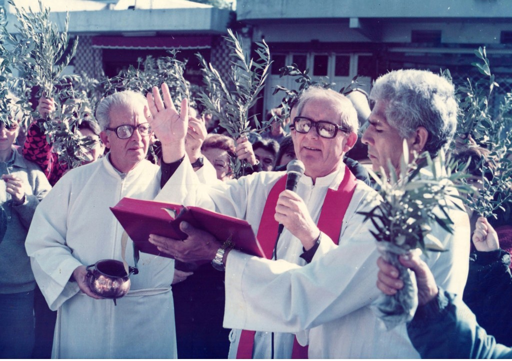 Misa de Ramos celebrada en las cercanías de la estación Munro del FFCC Belgrano, línea Retiro-Villa Rosa, congregando a vecinos y feligreses en esta festividad litúrgica, tradicionalmente realizada el domingo previo a la Semana Santa.