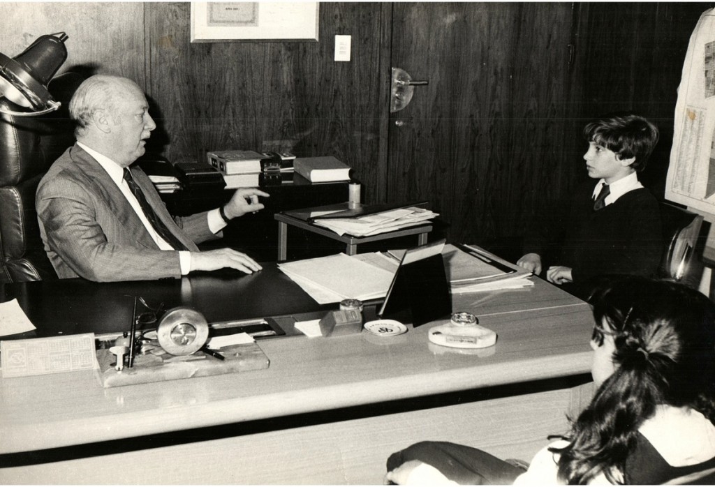 El intendente de facto de Vicente López, Pedro Augusto Ursini, durante su gestión (1978-1983), siendo entrevistado por un joven alumno.