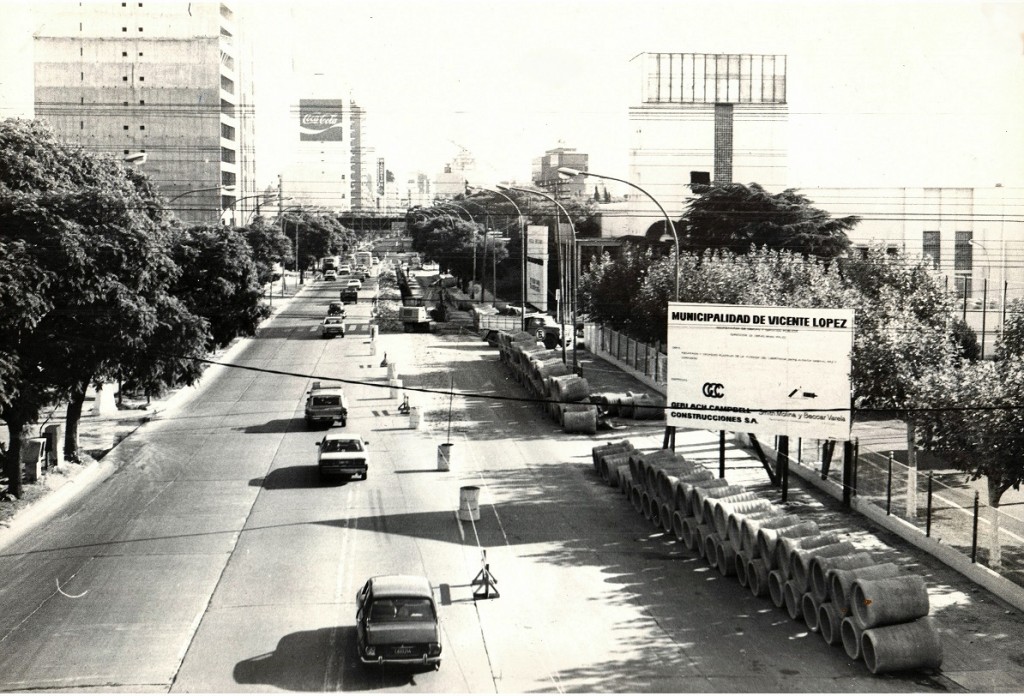 Obras de instalación de desagüe pluvial en Avenida Del Libertador, llevadas a cabo durante la gestión del intendente de facto Pedro Augusto Ursini, quien gobernó de 1978 a 1983.