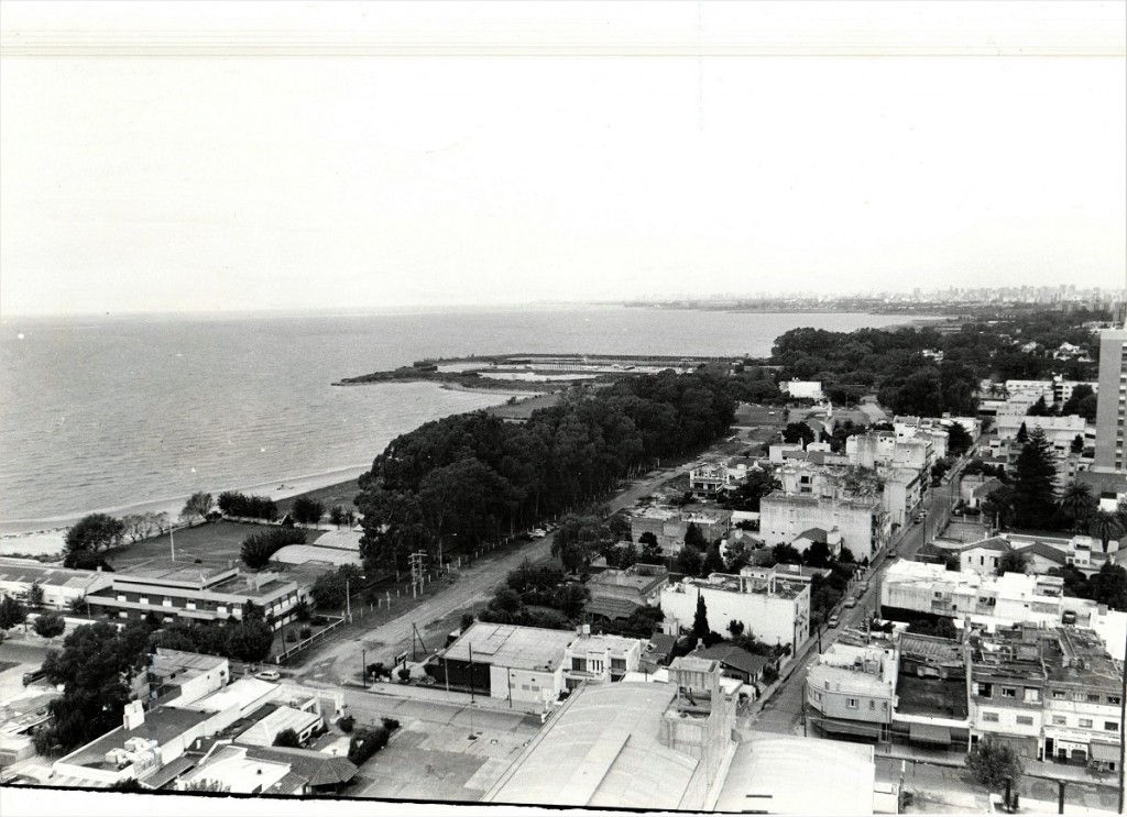 Vista aérea de Olivos y su costanera hacia principios de los años ochenta.