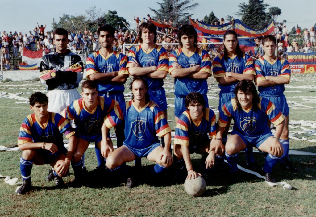 Formación inicial del equipo de Colegiales, campeón del Torneo Clausura de la tercera división del fútbol argentino. De pie: A. Otamendi, arquero, J. Yanacón, M. Weinbinder, H. Pérez, L. Estévez y G. Centurión. Hincados: E. Delpech, L. Balzame, M. Tossi, J. Testa y R. Gutiérrez. El equipo consiguió el ascenso tras vencer en la final a Argentino de Quilmes.