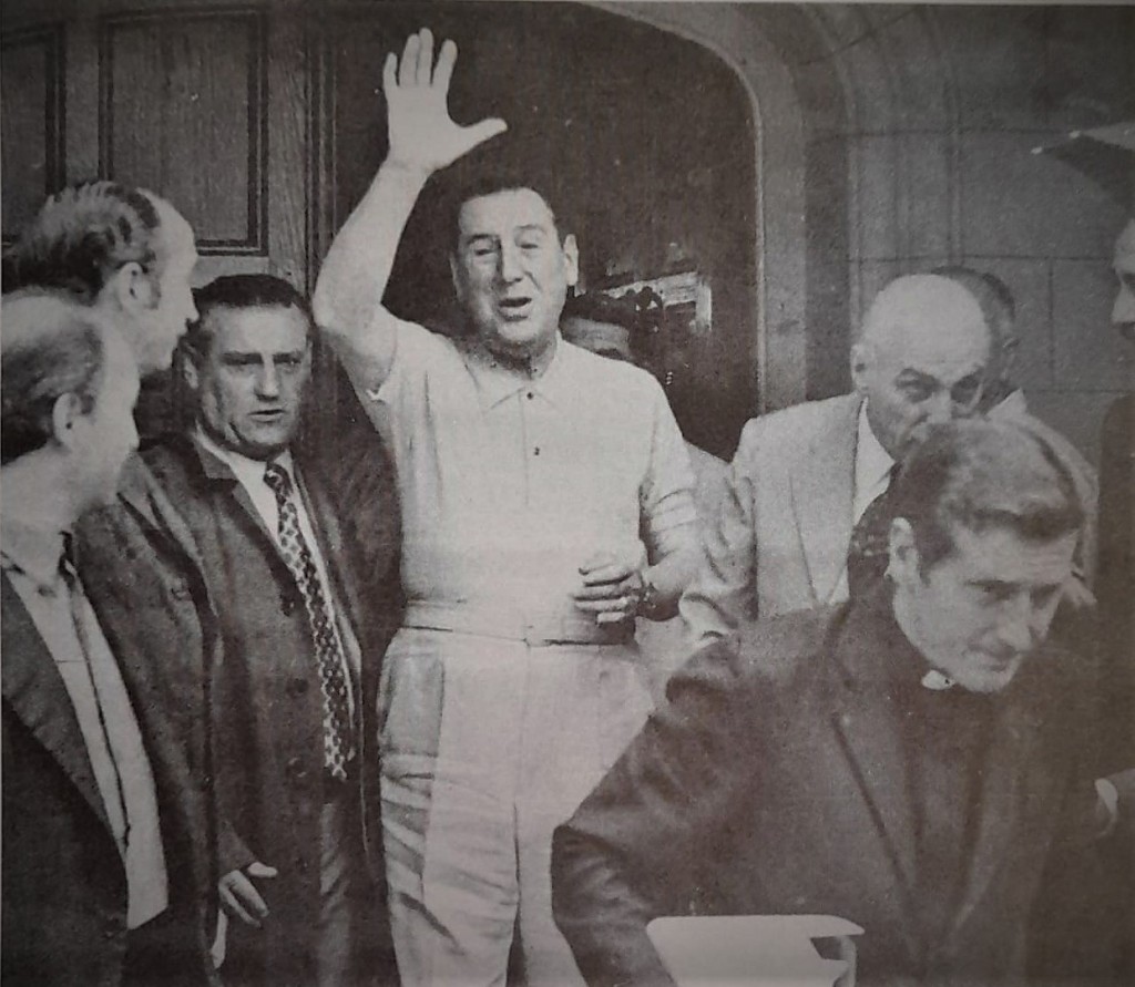 Encuentro de Juan Domingo Perón en su casa de Gaspar Campos 1065, en el barrio de Vicente López, con un grupo de sacerdotes por el Tercer Mundo, realizado antes de asumir nuevamente como presidente de la Nación en 1974.