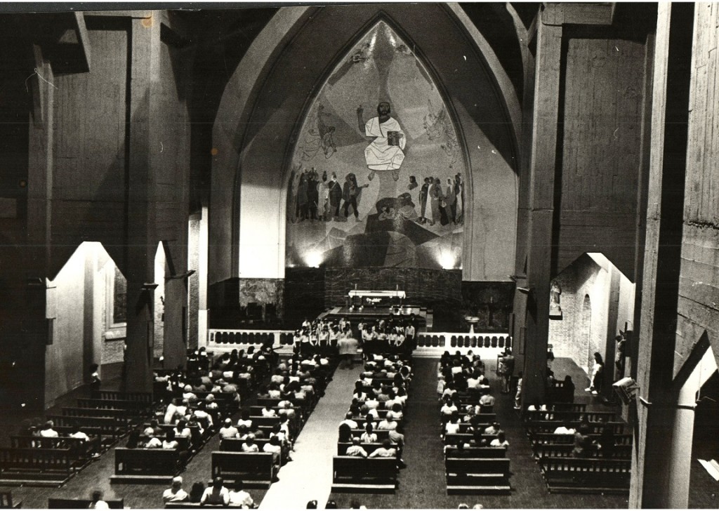 Oficio religioso en la Parroquia Jesús en el Huerto de los Olivos, ubicada en Salta 2620. Esta iglesia fue inaugurada el 6 de enero de 1897 con la presencia del general Bartolomé Mitre y del obispo Monseñor Espinosa, en terrenos donados por Hernán Wineberg, administrador del ex Ferrocarril Buenos Aires a Rosario.