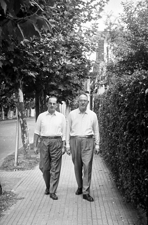 Los señores Marcovich y Nonel, vecinos de Olivos, caminando por las calles del barrio.
