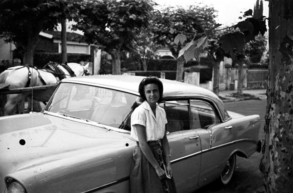 Susana Fonda Mespollet, vecina de Olivos, posando en la antigua calle Zubiaur, a la altura del 2200, que hoy se conoce como calle Dr. Claudio Cuenca.