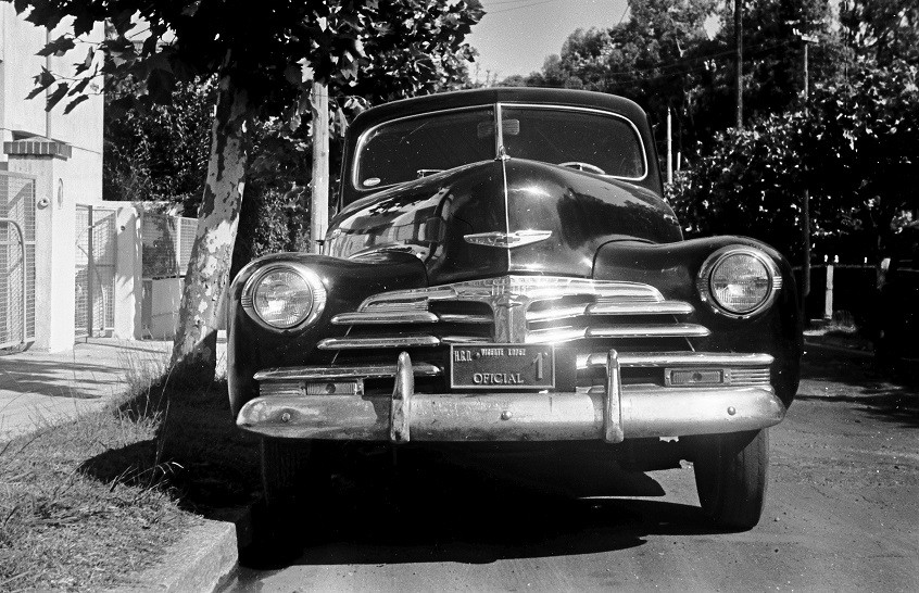 Coche de época con la placa oficial número 1 de Vicente López.