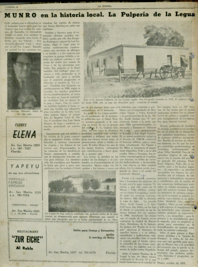 La nota del periódico La Ribera destaca la histórica Pulpería La Legua, fundada en 1850 en el barrio de Munro.