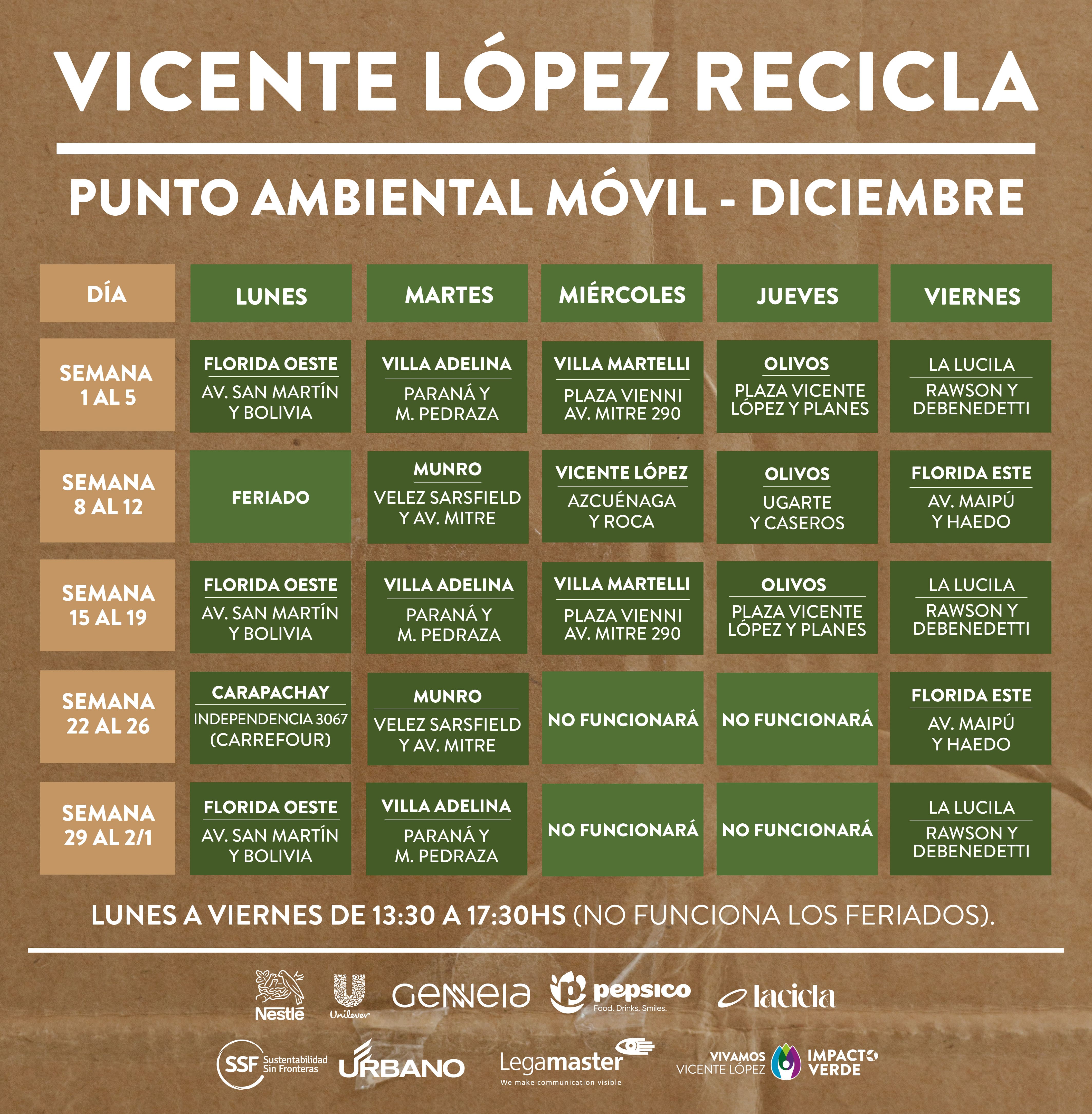Cada localidad de Vicente López tiene un día específico de la semana asignado para este servicio – un “Día Verde” – independiente y complementario a la recolección diaria.